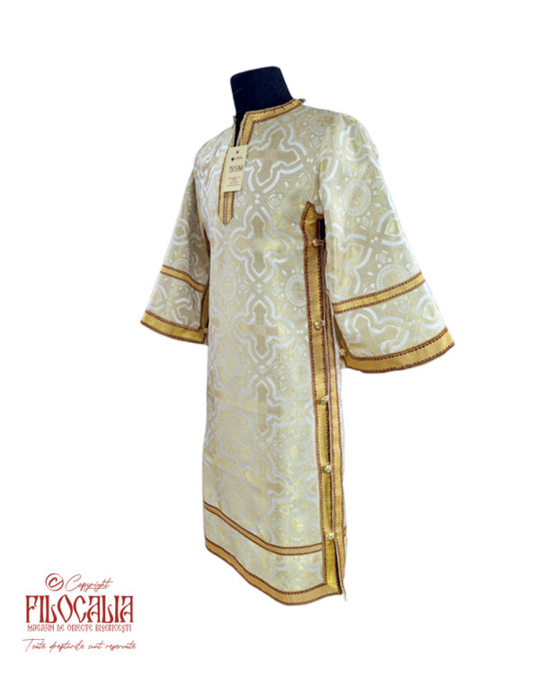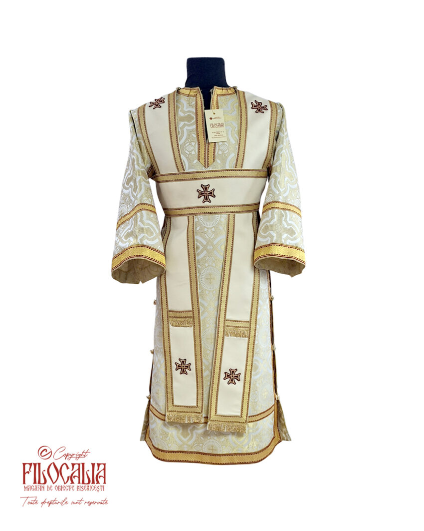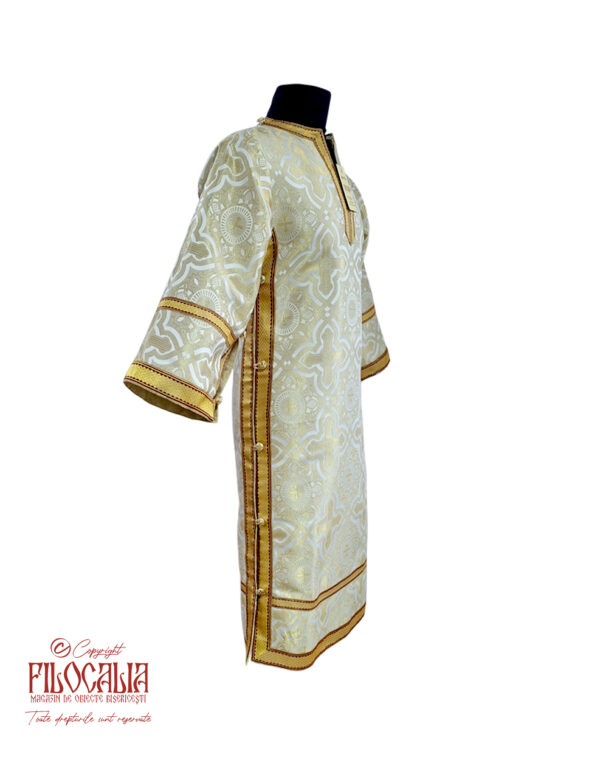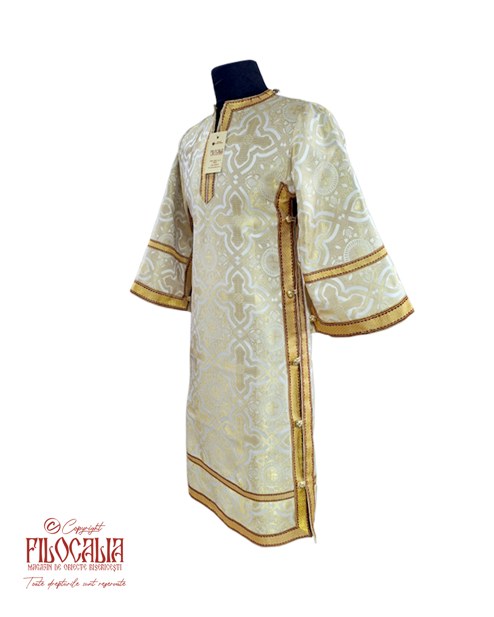 Stihar brocard pentru copii, de culoare crem cu ornamente aurii. Orar cu franjuri aurii. Pe spate cruce catifea aplicată.